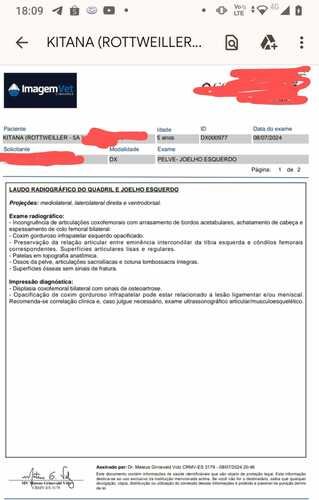 Infelizmente, como vocês já sabem minha filhota de quatro patas Kitana, uma rottweiler linda e muito dócil recebeu do diagnóstico de displasia coxofemoral, uma doença degenerativa que vai deixar ela inválida em alguns anos e que nós, como seus tutores e papais, teremos que auxiliar ela com fisioterapia e medicação pra ter uma qualidade de vida melhor. Essa notícia deixou eu e meu marido sem chão, pela situação e dor que ela irá enfrentar além dos gastos que teríamos dali pra frente. Ficamos assustados mas, como seria um processo ao longo de tempo, já estávamos nos acostumando e nos adaptando, porém no dia de ontem 26/07 veio a notícia que mais nos afetou!!!!