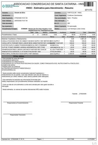 Custo com hospital = 19.915,60Honorários dos médicos, UTI, Biopsia e demais procedimentos = 23.540,00