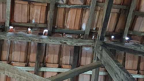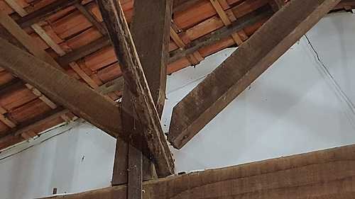Como pode ser observado no vídeo, o teto encontra-se com escoras e seu madeiramento bastante comprometido. (https://youtu.be/D2GHcSOXvN4 )