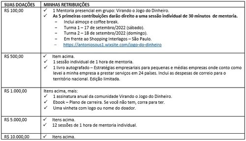 Para isso criei a Mentoria VIRANDO O JOGO DO DINHEIRO, que conta com várias dinâmicas com ferramentas práticas e vivências, onde apresento formas de viabilizar projetos de parcerias e empreendedorismo para uma PROSPERIDADE PLENA.