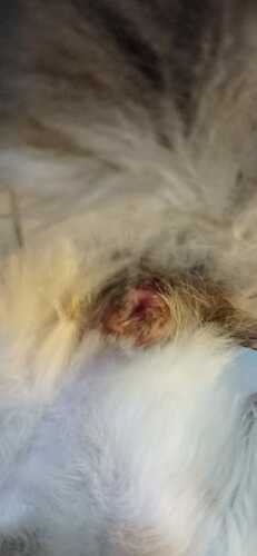 Quando me deu uma filhotinha durante a adoção, e depois aconteceu a crescer o anual desfeito e inchado, e a gatinha Chloe não aguentou de doer muito e nem fazia cocô até agora.