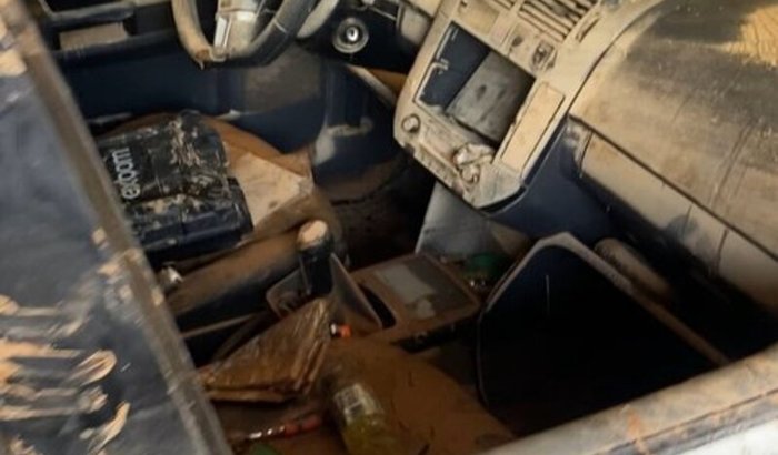 Um veículo mais velho, mas o que tenho em minhas condições e está todo tomado pelo barro e água