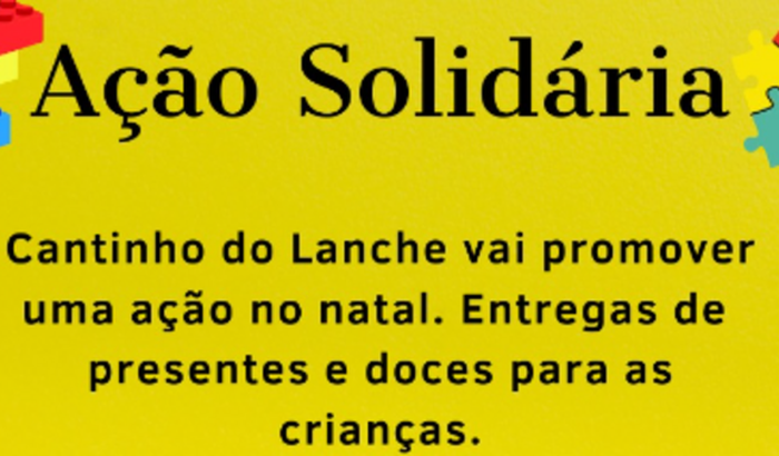 Olá somos cantinho do lanche estamos começando arrecadar doces brinquedos para natal solidário quem quiser ajuda tbm dinhero será usado para compra doces brinquedos q faltarem alegrar o natal das nossas crianças