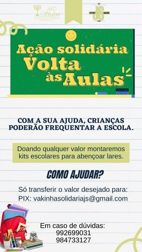 Estamos com uma ação solidária dos jovens shalom, esta tem o objetivo arrecadar materiais escolares para abençoar as crianças das nossas congregações.