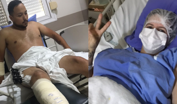 Meu esposo Rodrigo também teve fratura no fêmur e uma reconstrução da canela, no total ele passou por 4 cirurgias.