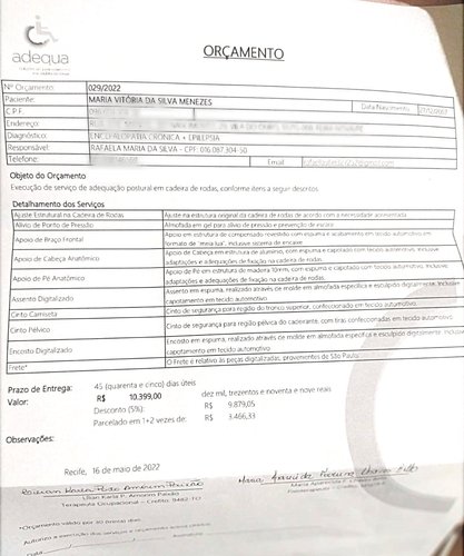 Passei por uma avaliação no dia 16/05/22 e o orçamento dessa adaptação para minha cadeira ficou no valor de 10.399,00 reais, minha mãe não tem condições de pagar esse valor e eu estou necessitando com urgência dessa adaptação, criamos essa vakinha para arrecadação desse valor, conto com a ajuda de cada um de vocês, qualquer valor que será bem recebido.