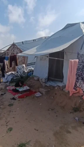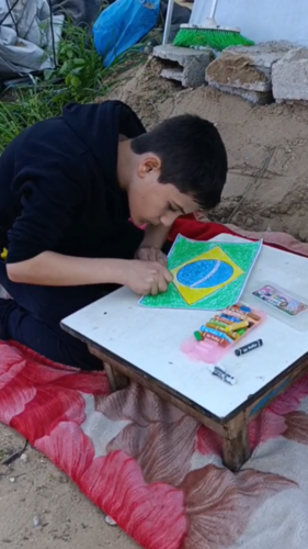 Sobre a minha história e de minha família, nós somos em 6 pessoas: eu, meus pais e meus 3 irmãos mais novos. Hoje vivemos em uma barraca, assim como muitas famílias em Gaza.