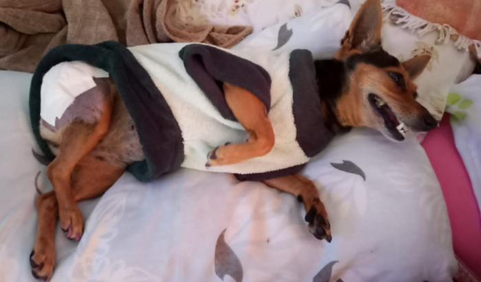Está é a Juna,foi resgatada de maus tratos,precisou fazer uma operação de urgência na cabeça do fêmur terá de fazer fisioterapia e outra cirurgia da correção da patela esquerda,precisamos de ajuda pois a mesma ainda requer 5000 reais, para o tratamento, cirurgia e medicamentos, e não temos mais condições de arcar, ela é muito doce e merece ter sua qualidade de vida de volta, agradeço a quem puder ajudar, trabalho vendendo coco na praia em São Vicente.