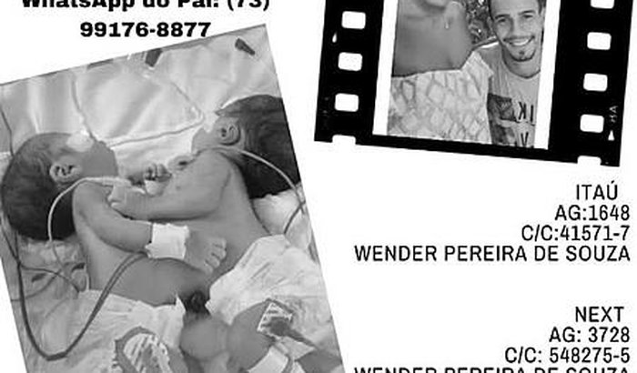Quero deixar bem claro que o dinheiro NÃO é para cirurgia dos meus filhos que vai ser coberta pelo estado, a ajuda é para o futuro dos meus filhos (pós cirurgia), para minha esposa (tratamento para males físicos e psicológicos) e para eu poder comprar uma moto e trabalhar como entregador onde quer que minha família precise que eu esteja, pois hoje decidi largar meu emprego em Porto Seguro-BA para poder estar perto de minha esposa e filhos em Salvador-BA e quando forem transferidos para São Paulo, o que afeta nossa renda atual mas minha esposa precisa de mim e quero muito ver meus filhos hoje independente do que seja o futuro.
