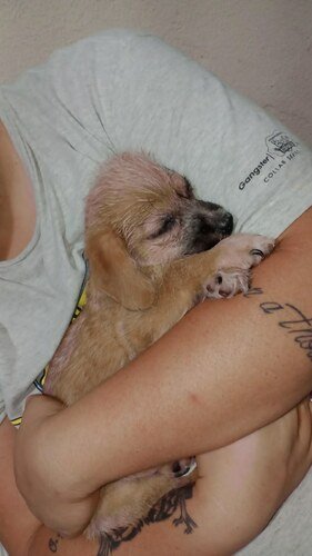 No dia do meu retorno, as tias da clínica disseram que eu tinha Giardia, anemia e estava desnutrido, então eu comecei a tomar os meus remédios e minhas mamães cuidaram de mim com todo carinho para que eu ficasse bem logo, mas se passaram alguns dias e foi percebido que tinham vermes em minhas fezes e me levaram de volta para a clínica. Continuei com meu tratamento e aparentemente estava melhorando, mas em seguida descobrimos a otite, então seguimos com as medidas necessárias, porém, comecei a piorar, estava fraco e chorava bastante, as feridas no meu corpo só aumentavam, enfim descobrimos a Cinomose. Tive minhas primeiras convulsões e internações. Eu mal ando, e quando consigo, é com muito esforço, as tias da clínica me acompanham a cada dois dias para checar minha evolução, mas por enquanto, nada de melhorar, a Cinomose me pegou de jeito…