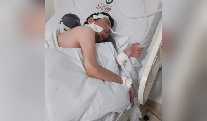 Para tratar um quadro de gripe com muita dificuldade para respirar saturando 30% devido também alteração anatômica de tronco e atrofia de membros. Sendo transferido com quadro grave de anemia. Passamos 3 dias pronto socorro marieta na espera de uma vaga no quarto. Neste momento ele está bem debilitado tratando anemia, respirando com oxigênio e foi diagnosticado também com pedras nos rins e segundo médico vai passar por uma cirurgia para colocação de um cateter, enfim serão longos dias de internação ainda. Neste momento seus pais estão em função dos cuidados no hospital revezando todos os dias, minha tia é do lar porque vive em função dos cuidados diários com André, meu tio é autônomo trabalho com feitio de pequenos móveis na garagem da sua casa. Sendo assim da suporte necessário para André também.