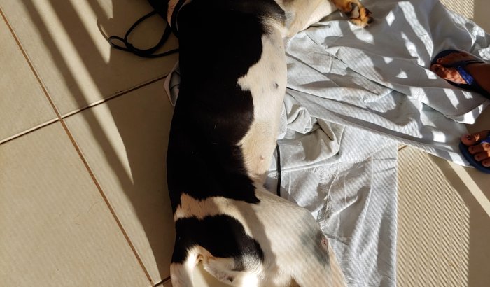 VICTORIA: com 22 kg abandonada no CIO (sendo sediada por cáes) e imóvel devido à uma fratura na pata direita quebrada (separada da mão) com muitas dores e com feridas abertas pelo corpo e bichos à mostra. (em tratamento <- necessita cirurgia ortopédica), castração e vacinação para posterior adoção.