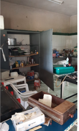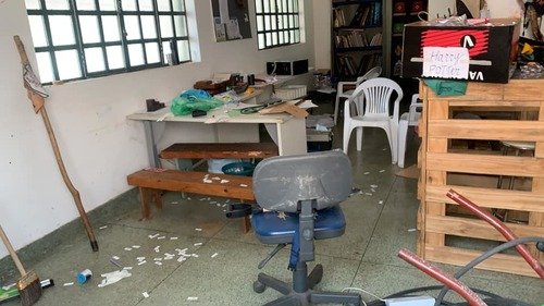 Entraram em nossa sede, no dia 22 de abril e quebraram parte da estrutura de um dos cômodos para saquear, arrombaram a grade da cozinha e levaram alguns pertences que estavam no armário, na sala de reuniões e escritório da sede levaram a impressora, espalharam documentos e quebraram o que não puderam levar.