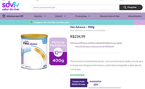A fabricante do leite (DANONE), em sua página oficial, recomenda um fornecedor que fornece desconto para compras acima de 04 latas. Dessa forma, a intenção é comprar a maior quantidade possível para conseguir um bom desconto e ajudar nosso amigo pequenino.