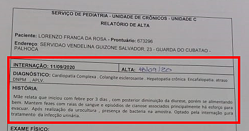 Lorenzo foi diagnosticado com cardiopatia complexa, colanginte esclerosante, hepatopatia crônica, encefalopatia e atraso DNPM (desenvolvimento neuro-psico-motor).