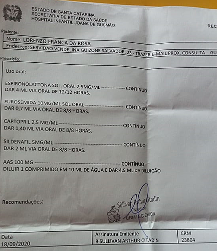 Inclusive, está tomando vários medicamentos: espironolactona, furosemida, captopril, sildenafil, AAS, digoxina.