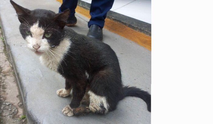 Pessoal, precisamos muito da ajuda de vocês. 💛O Frajola apareceu extremamente debilitado no local onde trabalho, e infelizmente estava com a patinha traseira em processo de necrose. Não sabemos exatamente o que aconteceu, mas a situação era grave e ele precisava de cuidados urgentes.