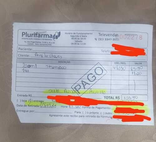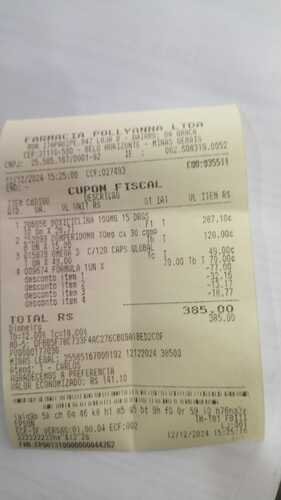 Segue a receita e os comprovantes de compra dos medicamentos.