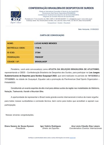 AJUDA PARA PARTICIPAR DA SURDOLIMPIADAS E SUDAMERICANOS CAMPEONATO DE ATLETISMO DE LONDRINA-PR E ECUADOR-Guayaquil