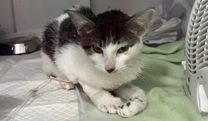 Este gatinho foi abandonado aqui na porta de casa e não podia deixar ele para fora, resgatei e comecei a buscar um lar para ele. na semana do carnaval ele começou a ficar muito quietinho e a não querer se alimenta, junto a isso também não conseguia defecar. Então levamos ele no vet e de cara tivemos que fazer vários exames e deixar ele internado pois estava muito fraquinho e com hipotermia, se não interna-se ele podia não suportar. Assim ele ficou dois dias internado realizou uma ultrassonografia que identificou uma alteração renal grande assim como no exame de sangue também feito. Ponto positivo é que descartamos a possibilidade de um tumor, mas ainda é cedo para ter uma noção de quanto tempo vai levar para o tratamento terminar, ainda é necessário entender se ele já nasceu com algum problema renal crônico ou se algo pontual causou.