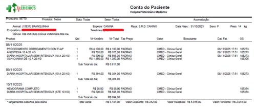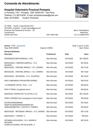 Até aqui, os gastos já somam R$ 16.458,40 — entre cirurgias, internações, exames e castração. Tenho todos os comprovantes de pagamento e as notas fiscais disponíveis.