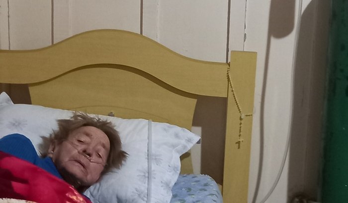 Dona Rosa está acamada e faz uso de Oxigênio des de 12/07/2023. Descobrimos que ela está com o coração inchado e interferindo que os pulmões possam trabalhar como devem, e por isso faz o uso de O² para ajudar na respiração.