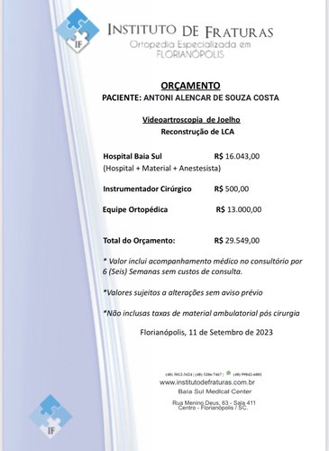 Olá pessoal! Estamos criando essa vaquinha on-line para ajudar na cirurgia do Antoni Alencar de Souza Costa que lesionou gravemente o joelho direito e precisa passar por este procedimento para refazer o LCA, suturar o menisco e reparo nos colaterais.