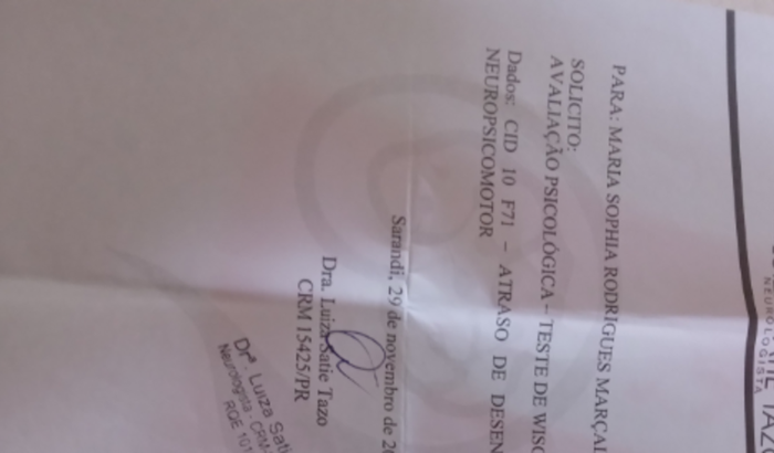 Eu sou a giselle peço ajuda pra exames da maria Sophia ela é nossa neta faz 2 anos que estamos com a quarta dela a Maria teve uma vida conturba agora ele presiza de tratamento .a neurologista passou (ressonancia nuclear magnetica de crânio sob sedação)atraso de desenvolvimento neuropscomotor (e avaliação psicológica-teste de wisc ) desde de já eu agradeço no momento estamos sem condições de pagar esses exames a fila do sus tá grande .meu pix 051.736.009-85