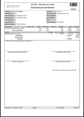 O protocolo exige aplicação de 200 ml a cada 21 dias, totalizando assim R$37.324,00 por sessão.