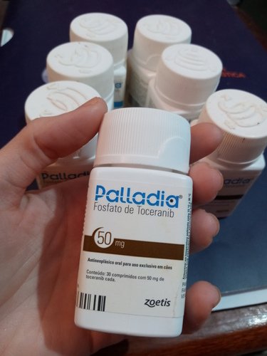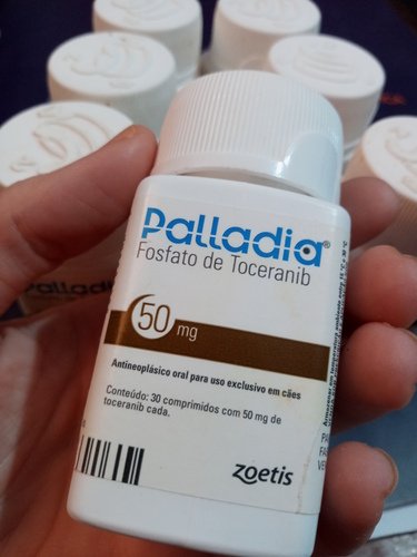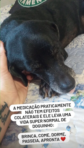 Entramos com o uso de uma medicação chamada PALLADIA, que é um medicamento antineoplásico para cães. E o Samy começou a dar indícios de melhora.