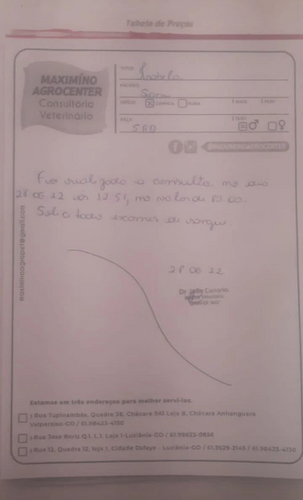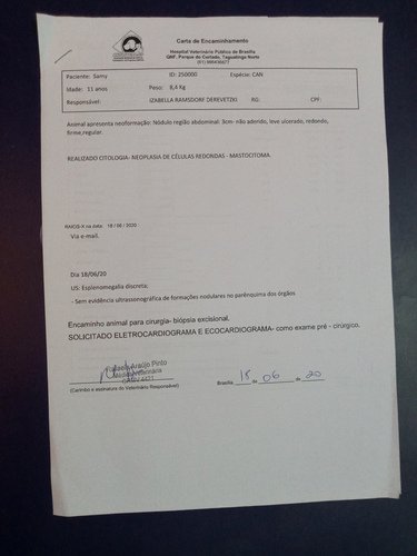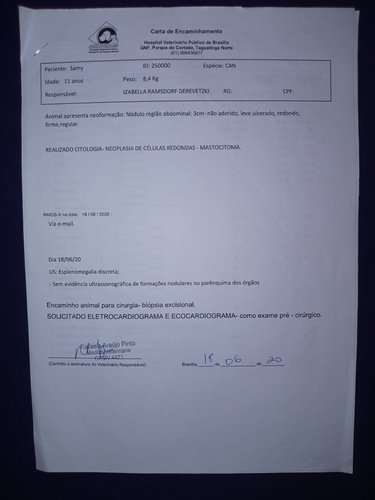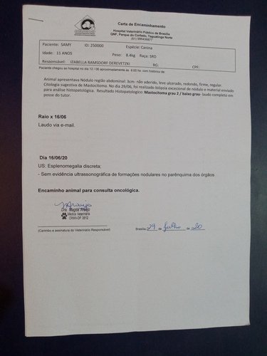 O caso dele tem que ser acompanhado de perto pela oncologista veterinária, onde sempre são solicitados vários exames para verificarmos se houve avanço das células cancerígenas no organismo dele.