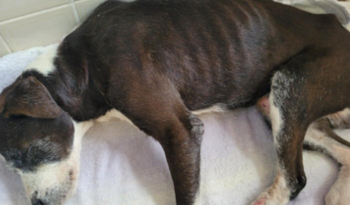 Esse cão apareceu e foi acolhido por moradores de rua que o prenderam. Achei que estava tudo bem. Ajudei com ração. Dias depois soube que os moradores - alcoólicos, estavam batendo nele. Está debilitado, desnutrido, doente. Vou levar para exames, tratamento e consulta no veterinário. Tentar a adoção ou novo lar temporário. Já tenho 2 cães e muito gasto. Por favor, conto com a ajuda de vocês. Agradeço, Véio agradece.