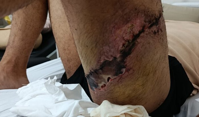 Os médicos informaram que ele precisa com urgência de uma cirurgia de reconstrução da pele para evitar algo ainda pior, como a perda da perna. É um momento desesperador para toda a nossa família.