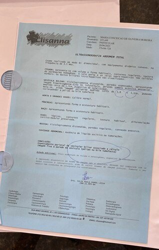 02 - Cirurgia de pedra na vesícula, que ao realizar o exame de ultrassom apresentou.
