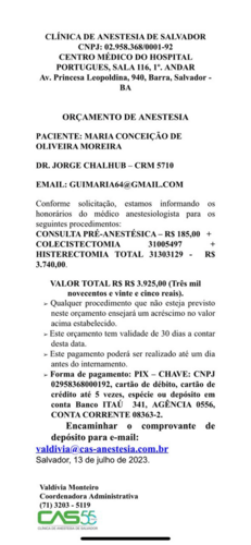 OBSERVAÇÃO: Todos os orçamentos e exames médicos estão disponíveis no link da vakinha, postado abaixo.