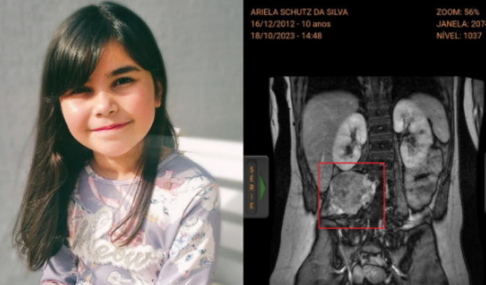 Acompanhamos, realizamos os exames e até outubro deste ano a Ariela estava bem. Contudo, para a surpresa de todos, o quadro clínico dela se tornou extremamente complicado, com o crescimento da parte que não foi removida de forma muito rápida, comprometendo muitas estruturas, com a chance de perda de movimento e outras complicações.