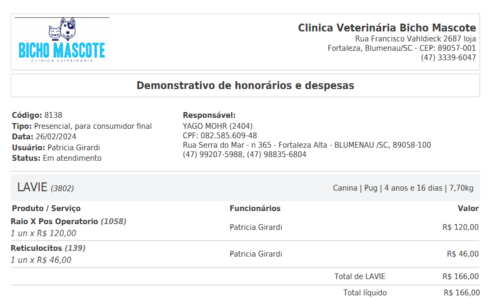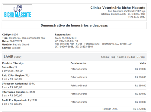 A La vie é muito especial, e estamos fazendo o possível para garantir o melhor tratamento para ela. Até agora, os custos já somam R$7.555, incluindo consulta, exames, internações e cirurgia até hoje 26-02