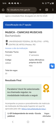 Olá! Eu sou a Ana Laura, tenho 19 anos e preciso da ajuda de quem estiver lendo isso aqui. Recentemente fui aprovada no curso dos meus sonhos (Ciências Musicais) na UFPEL (Universidade Federal de Pelotas), tenho praticamente tudo pronto, mas preciso de ajuda com o dinheiro para o transporte e a alimentação. Moro no interior de São Paulo e as coisas estão difíceis por aqui. Agradeço a quem doar e também a quem compartilhar, vocês estarão me ajudando a realizar um sonho.