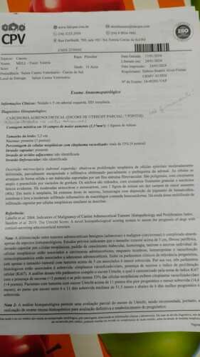 A pequena Mell, uma pinscher de 14 anos, teve a indicação veterinária de fazer uma adrenalectomia para remover a glandula adrenal esquerda, pois a mesma apresentava em seu interior, um nódulo com suspeita de ser maligno. A suspeita se concretizou após a família receber o laudo da bopsia.