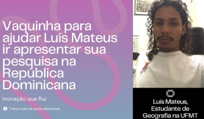 Olá! me chamo Luís Mateus, sou estudante de Geografia na Universidade Federal de Mato Grosso, campus Cuiabá. Crio esta vaquinha para levantar recursos financeiros com o intuito de participar do meu primeiro congresso internacional, o EGALC - Encontro de Geografias da América Latina e Caribe, que irá acontecer em Santo Domingo na República Dominicana, esse evento ocorrerá nos dias 26, 27, 28, 29 e 30 de junho de 2023.