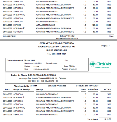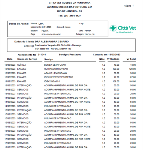 Clínica Città Vet: (Exames, hospedagem e tratamento): R$ 1.790