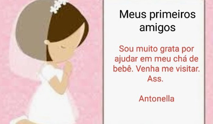 Agradeço ao amigo HERCILIO pela iniciativa de nos ajudar nesse momento único, pois nossa querida e tão esperada Antonella está chegando, e a correria do dia-a-dia junto com a dificuldade de alguns amigos se locomoverem, quase nos fez cancelaro chá de bebê, que é a oportunidade de voces nos ajudarem neste importante momento.