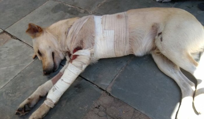 eu tinha saído de casa para fazer compras quanto voltei a vizinha trouxe ele e falou que ele tinha sido atropelado por um carro pegou de raspão mas cortou a barriga dele e tem que fazer uma cirurgia pra tirar uns bichos que estão lá