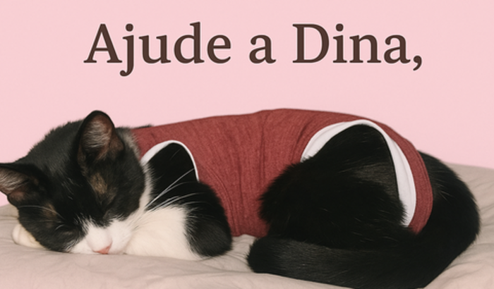 Oi, gente.Essa é a Dina, minha companheira de vida há mais de 7 anos. Ela esteve comigo nos melhores e nos piores momentos e agora é ela quem precisa de ajuda.