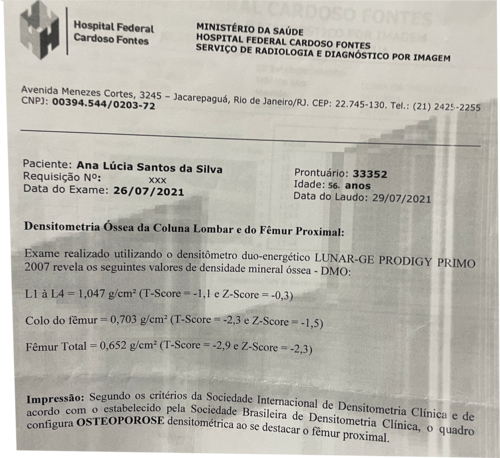 Hoje, ela sofre com fortes dores no corpo, por precisar urgente de uma Artroplastia total do quadril direito. A cura completa vem através dessa cirurgia ortopédica, que tem 100% de possibilidade de restauração do quadril, possibilitando a volta da mobilidade das pernas.