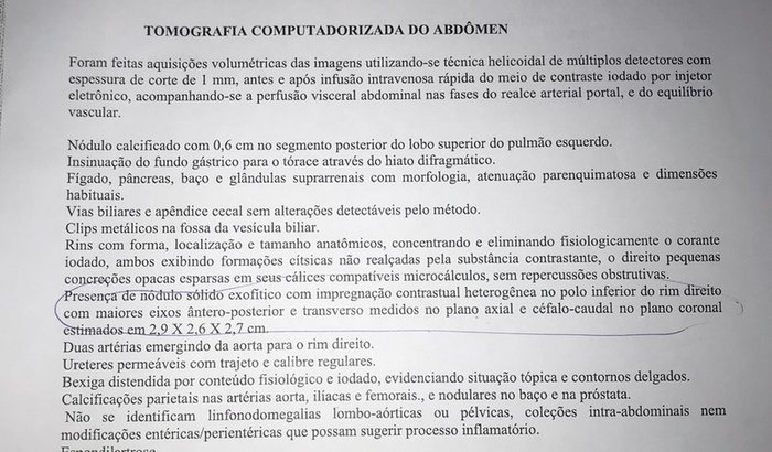 Adolfo Ferreira está com Nódulo Neoplásico no Rim e precisa executar uma cirurgia com urgência, a nefrectomia.