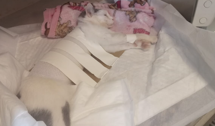 Fraturou a coluna na região toráxica, e por ser um local delicado e devido a fratura séria está paraplégica, mas precisa de uma cirurgia para poder ter mais qualidade de vida e conseguir se locomover com as patinhas da frente.