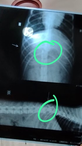Após exames radiográficos, foi constatado que o Bartô está com uma fratura de coluna muito grave e precisará realizar uma cirurgia para colocação de pinos e hastes.