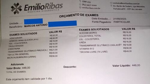 A quem quiser ajudar, fico muito agradecido. Seguem os exames e custos que totalizam o valor da Vakinha: