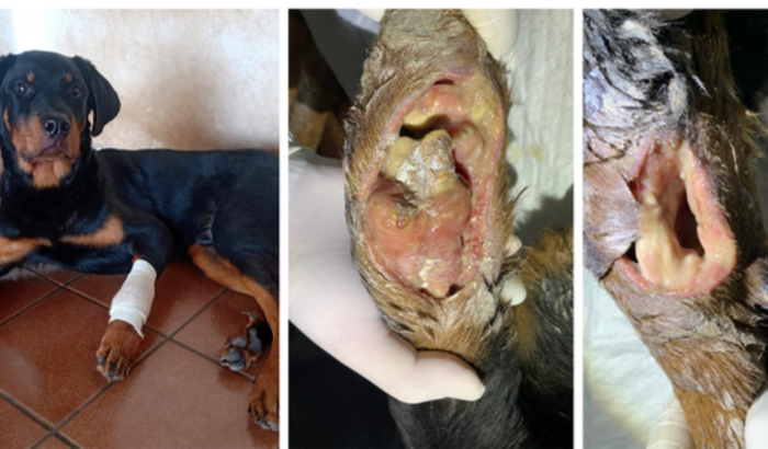 Precisamos urgentemente da sua ajuda para o Ragnarok, nosso querido filhote Rottweiler. Ele foi picado por uma aranha-marrom, causando danos sérios em seu cotovelo, carpo e sub-luxação no ombro.
